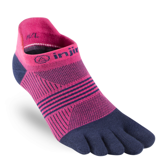 The Women’s Lightweight No-Show sock is a part of Injinji’s existing Run Series designed to maximize a runner’s performance without sacrificing personal comfort. Recognizing that all feet are not the same, the Women’s toesock is designed to better accommodate a female foot, which is typically narrower than a male’s foot, with an increased heel to toe stretch. The increased two-way stretch will enable the material to better stretch across a female’s foot arch providing compression throughout the foot. The fit of the individual toe-sleeves were redesigned for a better, snugger fit throughout the toes for female wearers without any excess material.